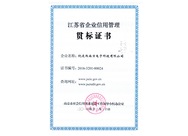 獲得江蘇省企業(yè)信用管理貫標證書(shū),加入中國物聯(lián)網(wǎng)產(chǎn)業(yè)聯(lián)盟會(huì )員單位